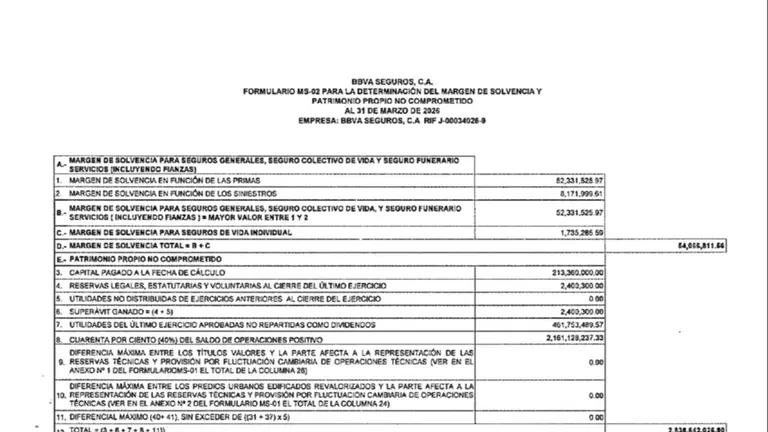 BBVA SEGUROS, C.A. FORMULARIO MS-02 30 ABR 2026