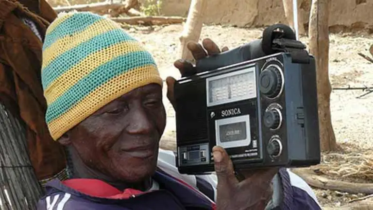 Con la radio pegada a la oreja, Wesley Wudea pide silencio a sus nietos. En los países afectados por el ébola, como Liberia, este medio se ha convertido en la mejor forma de comunicar con las poblaciones de regiones recónditas.