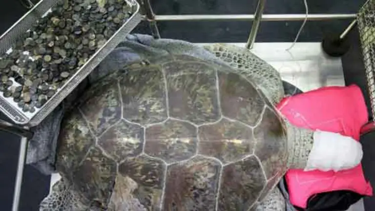 Una tortuga marina, operada hace dos semanas en Tailandia para sacarle 915 monedas del estómago, murió este martes en un centro veterinario de Bangkok por problemas intestinales provocados tras la intervención.