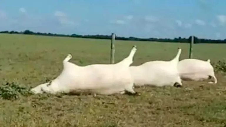 Imágenes inquietantes muestran a los animales, que tienen marcas de quemaduras en el estómago, acostados en una granja en Texas después de una tormenta eléctrica.