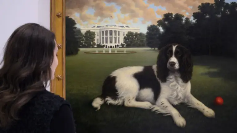 Entre los homenajeados figuran los fieles compañeros de presidentes estadounidenses. Como la pintura de "Millie", el springer spaniel inglés de George y Barbara Bush. O un lienzo conmovedor titulado "Silent Sorrow", que ilustra la tristeza del fox terrier del rey Eduardo VII después de la repentina muerte de su amo inglés en 1910.