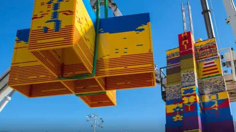 Esta torre se construyó con piezas de Lego acopiadas durante un año gracias a los habitantes de la ciudad.