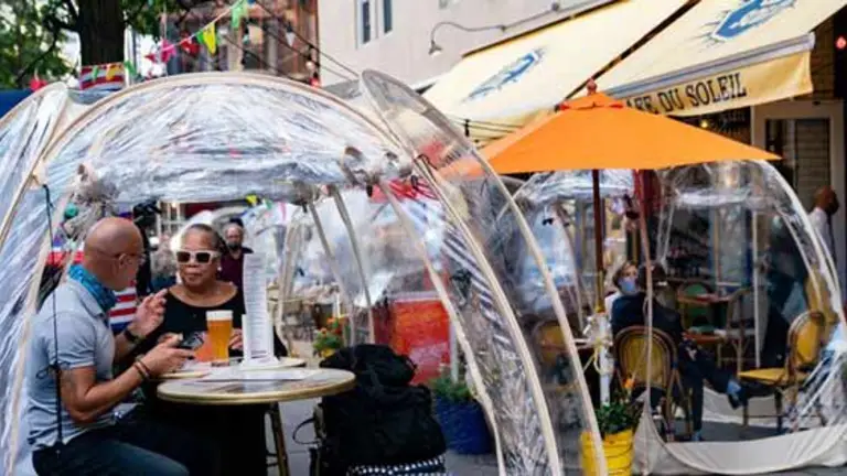 El restaurante y cafetería Café du Soleil de Nueva York, en Estados Unidos, propuso un singular esquema para mantenerse operativo en medio de la pandemia: las cenas dentro de burbujas de aire.