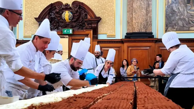 Este domingo, el mundo de la repostería alcanzó un nuevo hito en el Chelsea Town Hall de Londres. Un tiramisú de 440,58 metros de longitud fue reconocido oficialmente por el jurado de los Guinness World Records como el más largo jamás elaborado. Bajo la dirección del chef Mirko Ricci, un equipo compuesto por un centenar de profesionales y voluntarios trabajó durante dos jornadas consecutivas para ensamblar esta pieza monumental que serpenteó el icónico salón londinense.