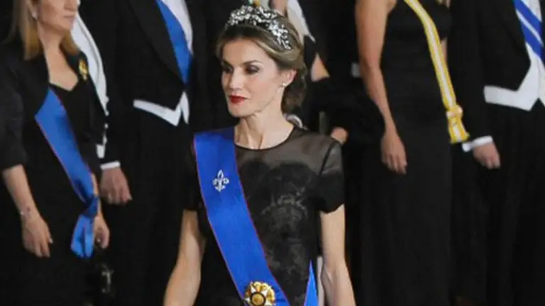 Un hermoso vestido negro fue la prenda que lució la bella Reina Letizia de España.