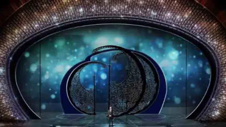 El diseñador de producción Derek McLane eligió cuidadosamente la mayoría de los cristales para el brillante proscenio que creó para la ceremonia del domingo. Dijo en una entrevista el miércoles que el diseño incorpora varias épocas en la historia del cine y busca evocar los destellos de la meca del cine.
