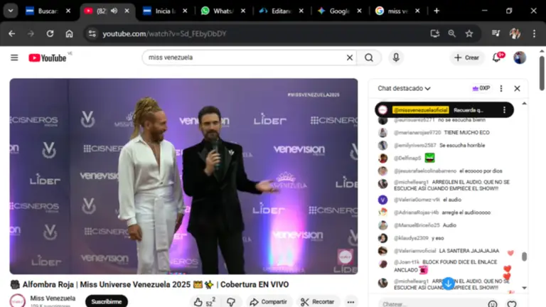 La transmisión en vivo de la noche final del Miss Venezuela 2025 a través de su canal oficial de YouTube, se ha visto empañada por algunos problemas técnicos en el audio, lo que genera entre los espectadores una ola de quejas.