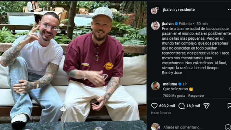 "Frente a la inmensidad de las cosas que pasan en el mundo, esta es posiblemente una de las más pequeñas. Pero en un mundo tan complejo, que dos personas que no coinciden en todo puedan reencontrarse, nos parece valioso", soltó Balvin en un pie de foto que ya cuenta con millones de "likes".