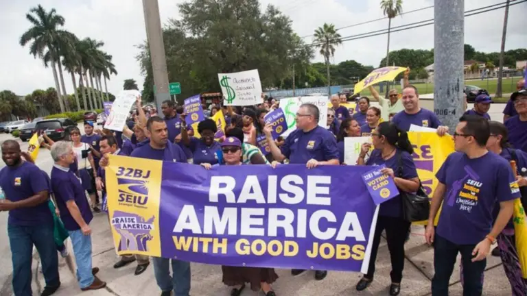 Los manifestantes forman parte del 32BJ SEIU, un sindicato de conserjes que se organizó formalmente en el sur de la Florida en 2021.