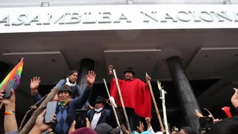 La toma de la sede parlamentaria se realizó en la calle Yaguachi de Quito, donde los manifestantes alcanzaron la plaza central compuesta por varios peldaños, desde la que se accede al edificio, ondeando banderas tricolores y de organizaciones de base, constató Efe.