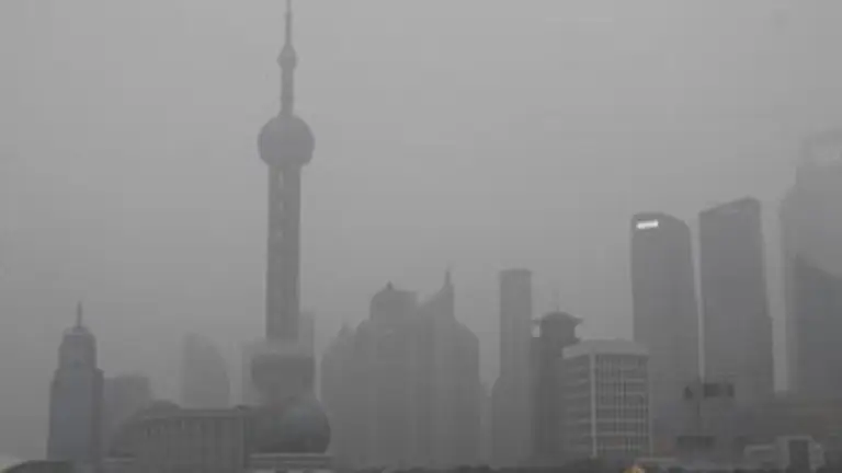 Según el Centro de Control Meteorológico de Shanghái, parte de la contaminación que envuelve hoy la ciudad proviene del interior del país, arrastrada por fuertes vientos del noroeste.