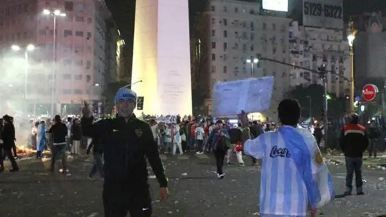 Un grupo de hinchas violentos, conocidos como los ‘barrabravas’ en Argentina, provocaron incidentes en los alrededores del Obelisco de Buenos Aires donde decenas de miles de personas homenajeaba a su selección tras la derrota ante Alemania en la final de Mundial Brasil-2014.