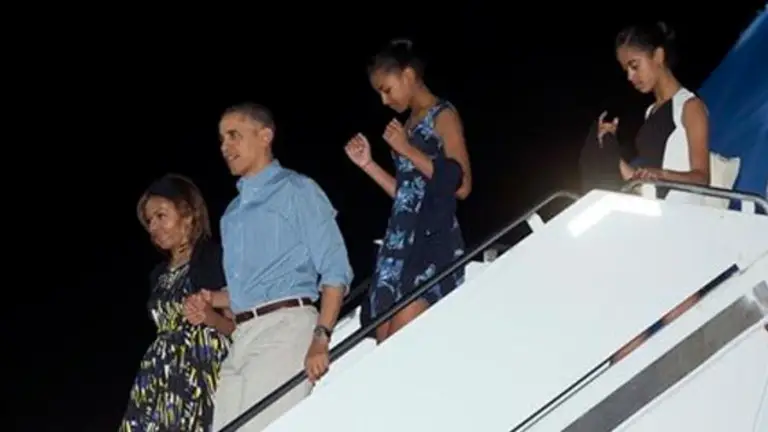 El presidente y sus hijas despegaron con destino a Washington el sábado por la noche.