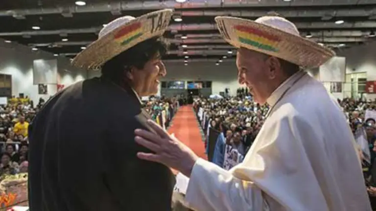 "Te ruego que recibas estos reconocimientos, que dejo aquí en Bolivia a tus pies, y que recuerdan la nobleza del vuelo del Cóndor en los cielos de los Andes y el conmemorado sacrificio del Padre Luis Espinal", agregó.