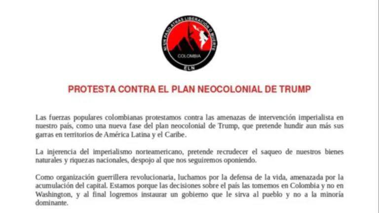 Según el comunicado de la guerrilla, esto forma parte de un supuesto "plan neocolonial de Trump" que pretende afianzar su influencia en América Latina y el Caribe.