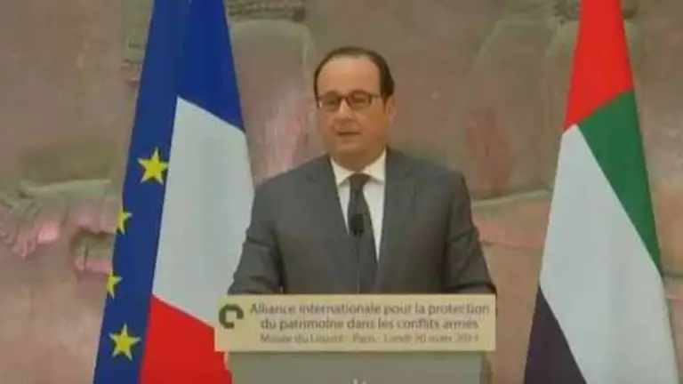 En esa ocasión, Hollande denunció los saqueos de los sitios arqueológicos por parte del grupo EI y del régimen sirio. Justamente mientras hablaba, un comando yihadista tomaba por asalto el museo del Bardo en Túnez, dejando una veintena de muertos.