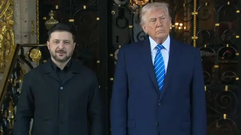 Con un apretón de manos a la entrada de la residencia de Mar-a-Lago, el presidente de Estados Unidos, Donald Trump, recibió este domingo a su homólogo ucraniano, Volodímir Zelenski.