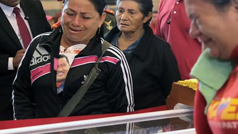 Los seguidores del fallecido presidente Hugo Chávez hacen fila de mas dediez horas y superior a 6 kilómetros para tratar de ver el rostro desu líder, cuyo cuerpo permanece en capilla ardiente en la sede de laAcademia Militar, en Caracas.Las colas iniciaron el miércoles luego de que el ataúd que contiene elcuerpo del mandatario fuese abierto para el velatorio.
