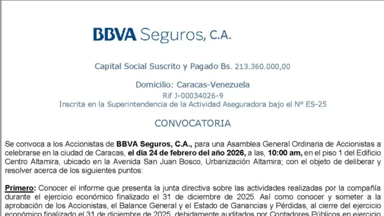 BBVA SEGUROS, C.A. CONVOCATORIA 03 FEB 2026