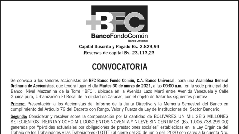 Convocatoria | Bancaribe