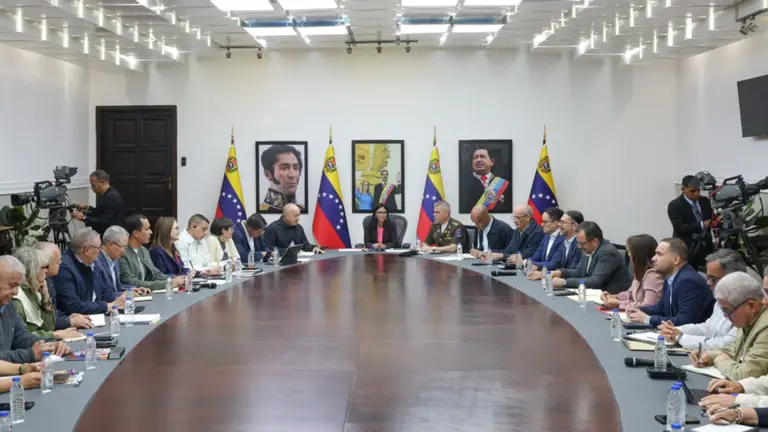 En el Palacio de Miraflores, en Caracas, se lleva a cabo el Consejo de Ministros número 758, encabezado por la presidenta encargada de la República, Delcy Rodríguez, y en el que participa el gabinete ministerial y los vicepresidentes sectoriales.