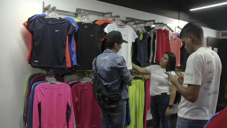 La encargada de tienda de Zona Franelera, Andreina Dávila, indicó que la tienda vende ropa deportiva al detal, pero “si compran al mayor, le sale más económico. Tenemos precios de fábrica”.
