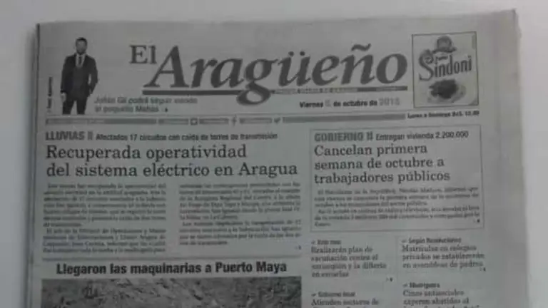 “Aragua se queda sin uno de sus principales diarios, el periódico El Aragüeño dejó de circular el pasado 5 de octubre luego de 46 años de labor informativa ininterrumpida, producto de la dificultad para adquirir papel, tinta y el resto de la materia prima necesaria para imprimir”, manifestó la diputada Olivia Lozano a través de su Twitter.