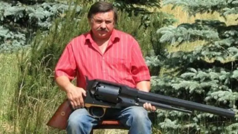 Este es el revolver más grande del mundo. Se trata de un revolver Remington modelo 1859 fabricado por el polaco Ryszard Tobys de Czempin. No tengo ni idea de las dimensiones exactas de esta enorme arma, pero en las imágenes podemos hacernos una idea bastante clara de la enorme magnitud que tiene. No estoy seguro de si puede disparar, a lo mejor sí. El problema es encontrar munición que le funcione / Dogguie