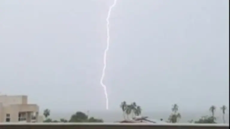 Mientras que en Lechería registraron el momento en el que un rayo impactó en la tierra.