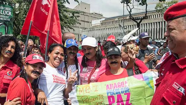 Vendedores ambulantes, mujeres con bigotes de cartón, muñecos inflables del expresidente Hugo Chávez y habitantes del interior del país, fue parte de lo que se encontraba en la marcha de los seguidores del chavismo, pautada para este martes a las 9:00 am en la sede de Cantv en la avenida Libertador y que llegaro a Miraflores en horas de la tarde.