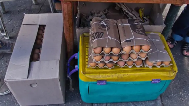 Una vendedora anónima frente al mercado dijo, “vendo el cartón a Bs 350 mil, el medio a Bs 170. Te hago el combo de 10 huevos a Bs 12 mil, 9 huevos a Bs 110 mil, 6 a Bs 85 mil y 4 a Bs 48 mil, es decir, Bs 12 mil cada huevo y gallinas a Bs 200 mil el kilo”.