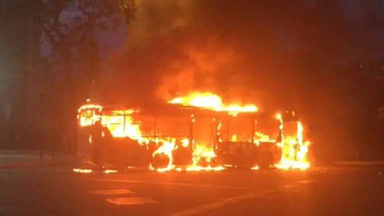 Según reportes de la Policía del municipio Sucre, otra unidad fue tomada e incendiada debajo del puente de Los Dos Caminos, hubo el intento de llevarse una cuarta unidad pero ante la presencia de una patrulla policial, los "motorizados anárquicos" la chocaron en la zona de los Palos Grandes y Los Dos Caminos.