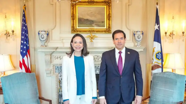 La dirigente opositora María Corina Machado ofreció sus primeras declaraciones tras reunirse con el secretario de Estado de Estados Unidos, Marco Rubio, en Washington.