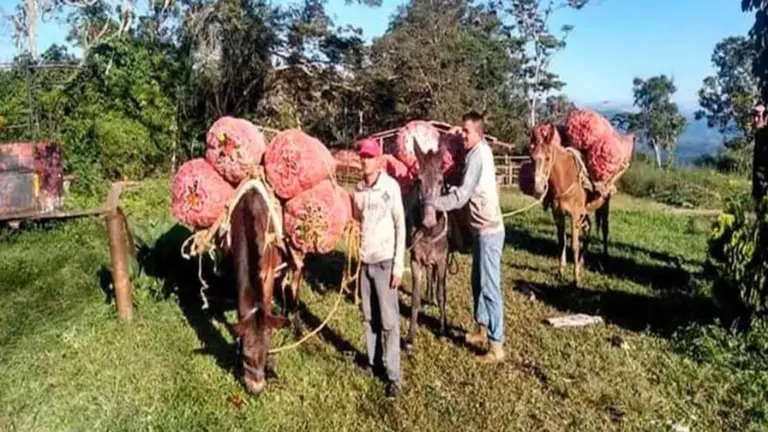 En medio de esta delicada situación, el desespero de los agricultores los ha llevado a trasladar en mulas sus cosechas frescas antes que se descompongan mientras esperan el combustible.