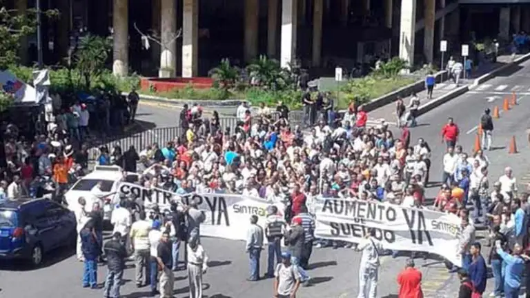 Trabajadores activos y jubilados del Consejo Nacional Electoral (CNE) protestan este lunes en las adyacencias del organismo para exigir un aumento de sueldo, además se declararon en "hora cero" hasta que se cumpla el contrato colectivo.
