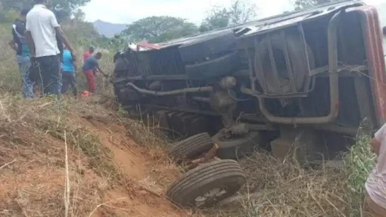 Un fallecido y doce personas resultaron lesionadas tras el volcamiento de una unidad de transporte público que se trasladaba este sábado por la carretera Villa de Cura – Valles de Tucutunemo, del estado Aragua. El accidente se registró en el sector Los Bagres, a la altura del Comando Rural de la Guardia Nacional del municipio Ezequiel Zamora.