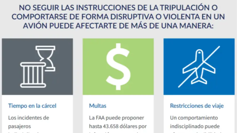 Respetar las reglas es el principio, particularmente, aquellos que ignoren las indicaciones de las azafatas podrían enfrentar multas de hasta 45 mil dólares.