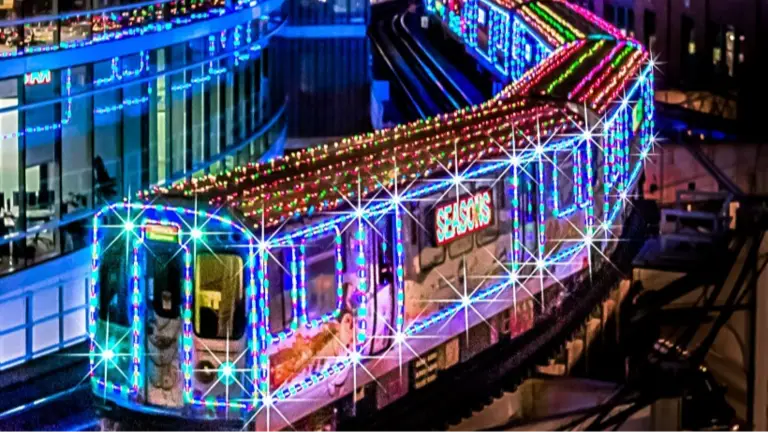 Es un tren del “L” con seis coches decorados y un vagón plano abierto donde va Papá Noel en su trineo, recorriendo las ocho líneas ferroviarias de la CTA como parte del servicio regular. Lleva también canastas de comida para organizaciones benéficas y suele concentrar grandes multitudes en estaciones específicas y días puntuales de la temporada. Sus horarios serán los siguientes: